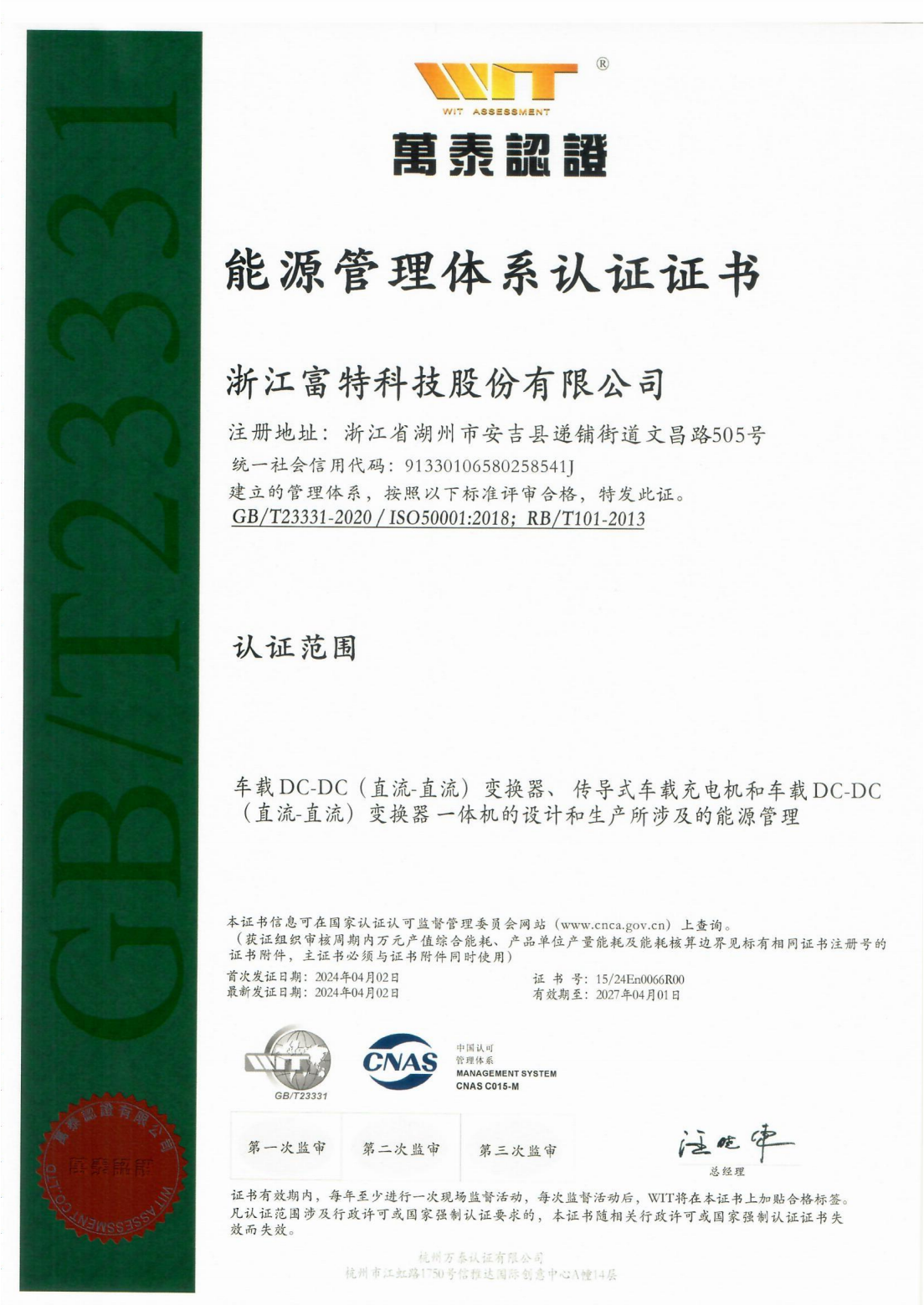 浙江富特科技股份有限公司,成立于2011年8月,生产基地位于湖州市安吉县,研发中心位于杭州市西湖区、西安市高新区,是一家专注于新能源汽车核心零部件的国家级高新技术企业,是国内新能源汽车车载充电机及车载 DC/DC 转换器的主要供应商。