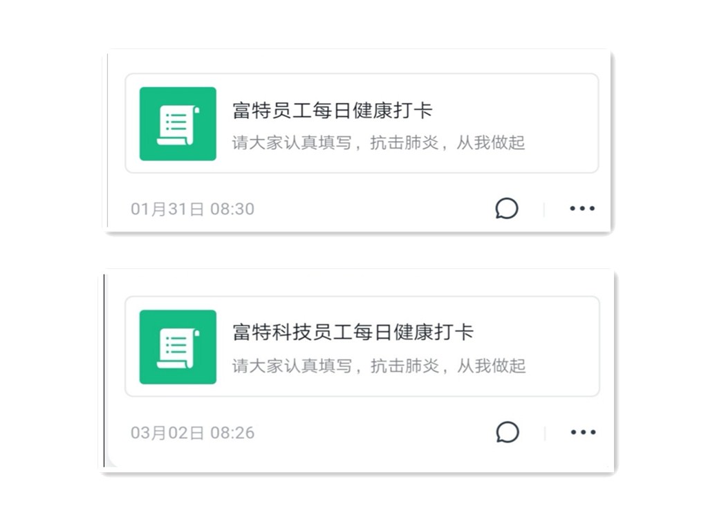 信息收集:员工健康打卡,保证掌握员工每日身体及复工条件信息