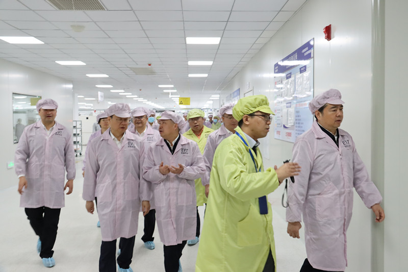 在倪斌先生的带领及介绍下,马晓晖、王纲、孙贤龙、杨建新、夏文星等市四套班子的领导们对公司车规级产线有了一定的了解。